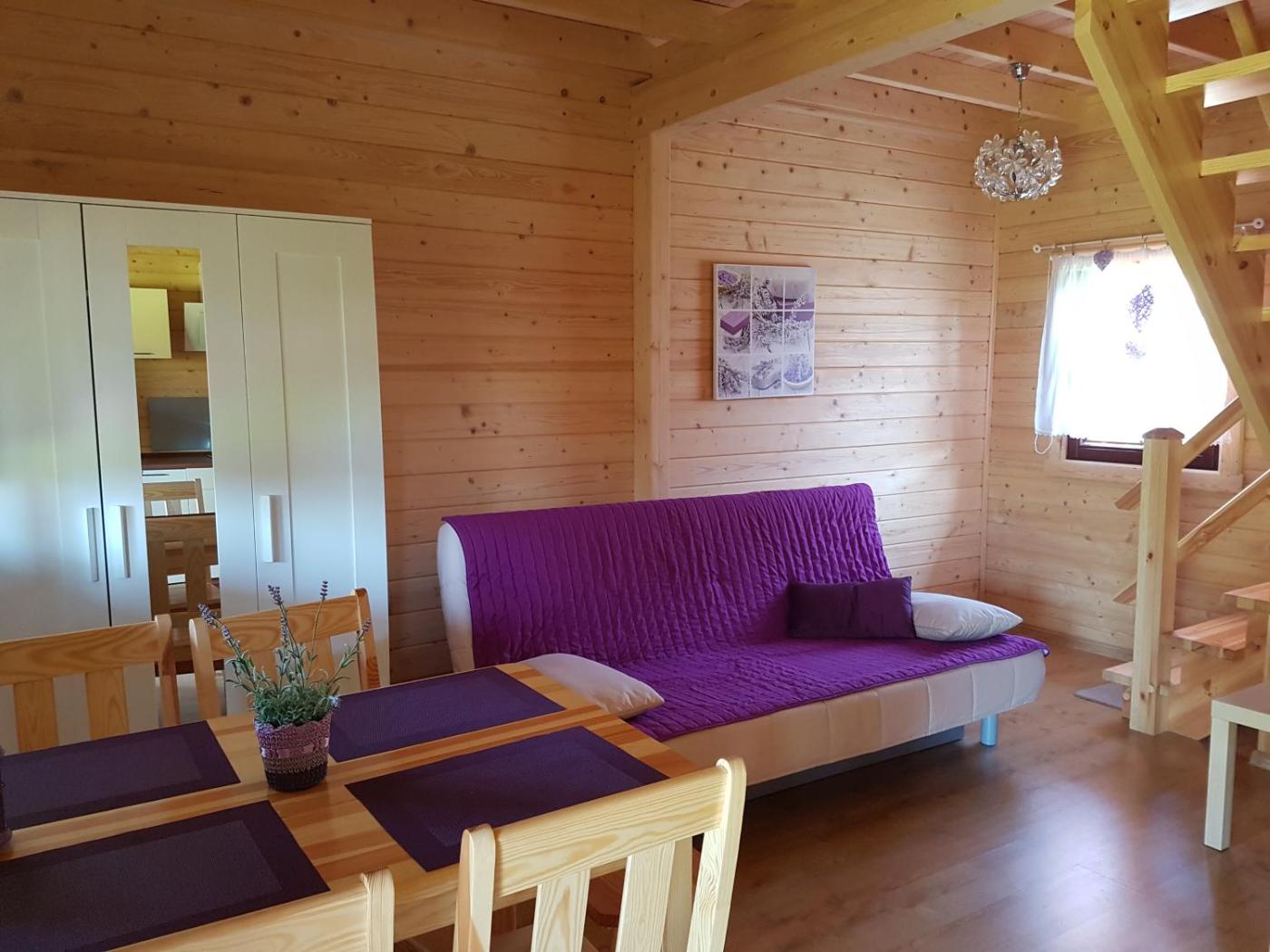 Domek z 2 sypialniami. Featuring a private entrance, this chalet consists of 1 living room, 2 separate bedrooms and 1 bathroom with a walk-in shower. Guests will find a stovetop, a refrigerator, a dishwasher and kitchenware in the fully equipped kitchenette. The chalet also offers a barbecue. Boasting a terrace with garden views, this chalet also provides a seating area and a flat-screen TV. The unit offers 5 beds. Domek - 6 osobowy. Powierzchnia pokoju ok.: 60 mkw.