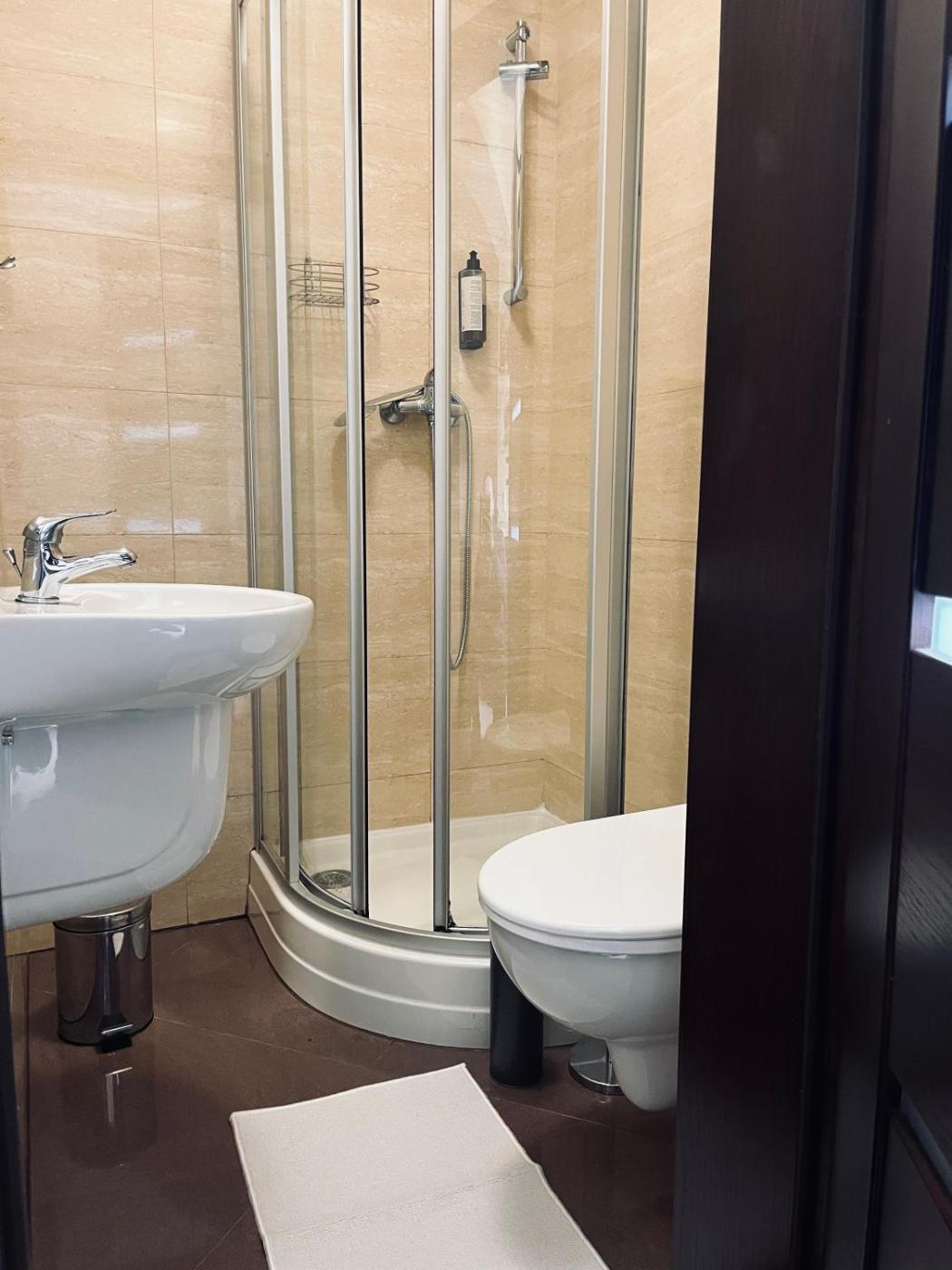 Pokój Czteroosobowy z łazienką. The quadruple room includes a private bathroom fitted with a shower and a hairdryer. The quadruple room features a tea and coffee maker, a wardrobe, a sofa, a flat-screen TV with satellite channels, as well as city views. The unit has 2 beds. Pokój Czteroosobowy - 4 osobowy. Powierzchnia pokoju ok.: 20 mkw. ;