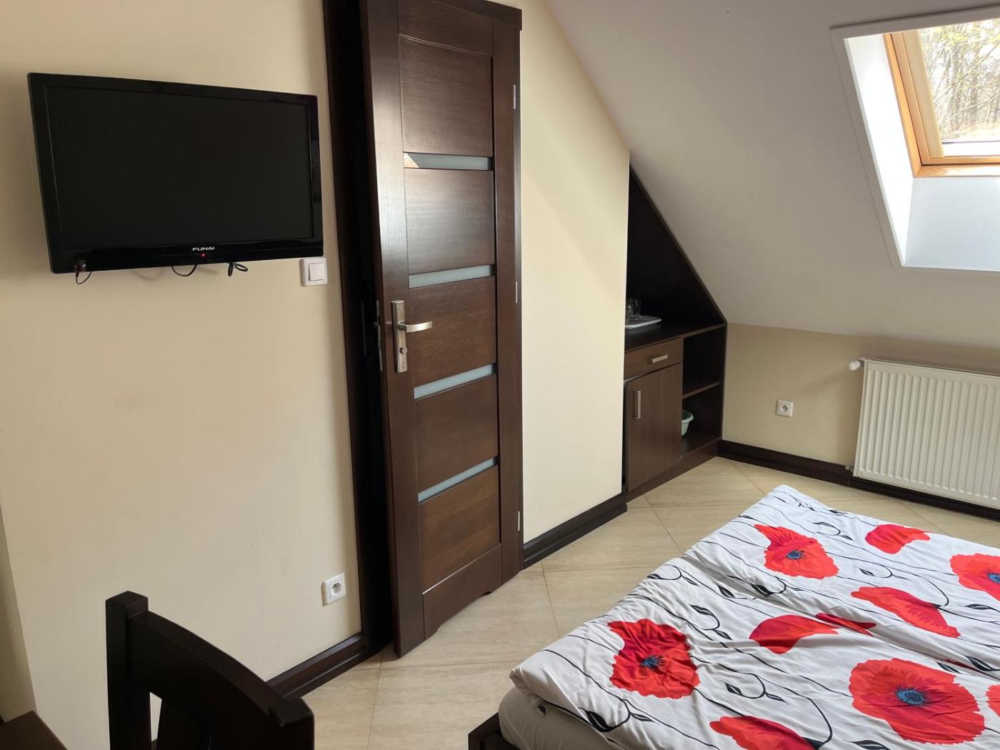 Pokój trzyosobowy z tarasem. Guests will find a stovetop, a refrigerator, kitchenware and a tea and coffee maker in the fully equipped kitchen. The triple room also includes a barbecue. This triple room is comprised of a flat-screen TV with satellite channels, a private bathroom as well as a terrace. The unit has 2 beds. Pokój Trzyosobowy - 3 osobowy. Powierzchnia pokoju ok.: 20 mkw. ;